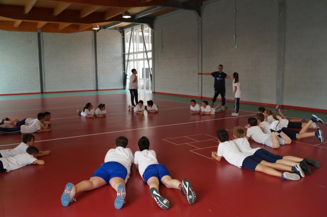 Il primo modulo “Incontro a Scuola” ha previsto, attraverso un’ampia gamma di giochi, percorsi ginnici per migliorare le capacità coordinative di base e speciali a difficoltà crescente, ed esercitazioni di collaborazioni con la palla. Si è data la possibilità agli alunni di confrontarsi reciprocamente, di divertirsi, di migliorare le proprie capacità motorie, anche di tipo pre-sportivo.
