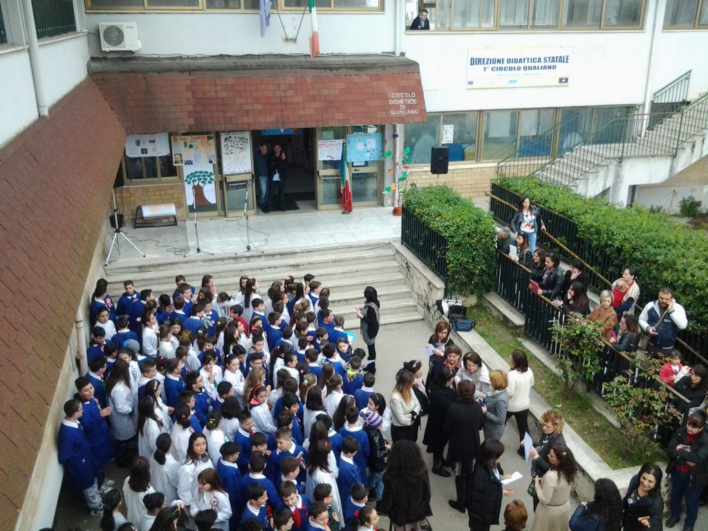 Il progetto del 1° Circolo di Qualiano è stato pensato per la prevenzione di fenomeni di marginalizzazione e dispersione scolastica e per l’integrazione di alunni in situazione di disagio sociale, emotivo e affettivo. La platea di pertinenza, infatti, è caratterizzata dalla presenza di alunni provenienti sia da famiglie con un basso livello culturale, che determina in alcuni casi, atteggiamenti di sfiducia o di indifferenza verso l’istituzione scolastica, sia da famiglie con un elevato livello culturale che determina anche forti aspirazioni e aspettative positive verso l’istituzione stessa. Le strutture ed i servizi presenti nel Comune di Qualiano però, non sono sufficienti a soddisfare i bisogni di aggregazione, di crescita, di orientamento, e di sostegno di una popolazione estremamente eterogenea e, la maggior parte degli alunni trascorre il tempo libero per strada oppure isolandosi con l’uso di videogiochi e/o social network che ne influenzano negativamente i comportamenti individuali e sociali. In questo contesto poi, la disoccupazione, il lavoro minorile, la droga, la micro-criminalità, l’ecomafia e l’immigrazione sono problemi sociali maggiormente avvertiti sul territorio che si configura, pertanto, ad alto rischio per le nuove generazioni. Così, grazie all’opportunità concessa da ‘Scuola Viva’, la scuola è intervenuta con un progetto di ampliamento dell’offerta formativa che ha agito su aree educative fondamentali: