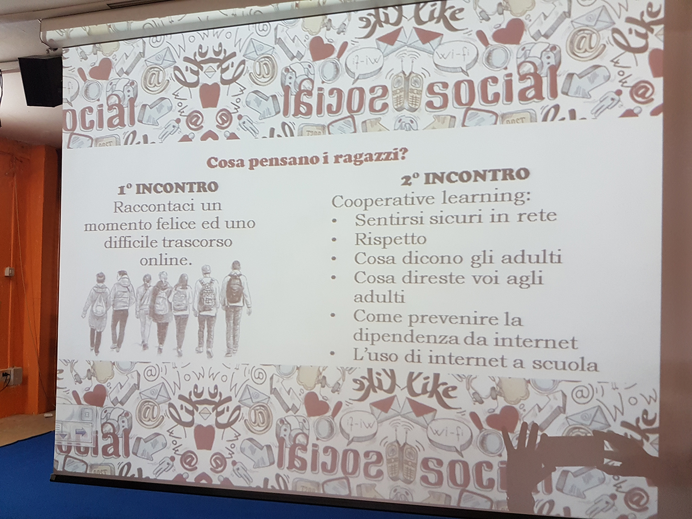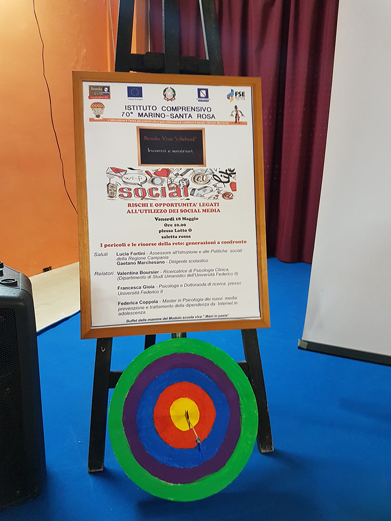 Il 18 maggio 2018 presso I.C. Marino Santa Rosa di Ponticelli, si è svolto l’incontro “Social – Rischi e opportunità legati al mondo dei social media”: ultimo di un ciclo di incontri e seminari, inseriti nella seconda annualità di Scuola Viva, tenuti dalle dott.sse Valentina Boursier, Francesca Gioia e Federica Coppola, psicologhe ricercatrici dell’Università Federico II di Napoli, con e per gli alunni della scuola media e le loro famiglie e per l’occasione, alla presenza dell’Assessore all’Istruzione della Regione Campania Lucia Fortini.