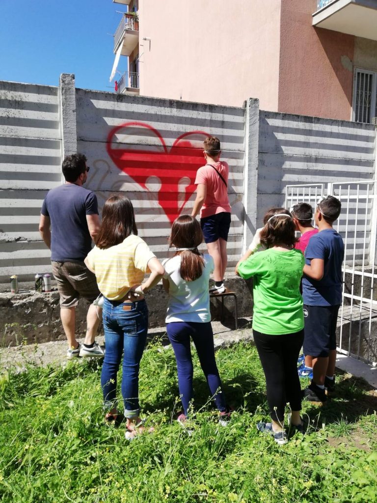 Con Scuola Viva s’impara l’arte e si mette in pratica, altro che da parte! Si, perchè il celebre marchio di fabbrica del writer statunitense è stato riprodotto in un murales realizzato dagli alunni che hanno partecipato al corso “Loverline at School”, uno degli 8 moduli del progetto “La Scuola Come Laboratorio”, che ha previsto anche l’Orto inclusivo, un modulo sul vivere sano, il musical, il laboratorio di fumetto con Irno Comix & Games, i percorsi di matematica o di legalità.