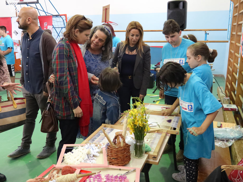 Ed infine, un laboratorio, che è una piccola chicca di Scuola Viva, che racchiude in sé tutto quello che questo istituto porta avanti con Scuola Viva: il recupero di una tradizione, attraverso la lavorazione delle fibre naturali e della ginestra e cui quest’anno si è aggiunta anche la tintura dei tessuti, sempre, rigorosamente con colori derivanti d frutta e fiori, insomma, solo con ciò che ci regala la natura!