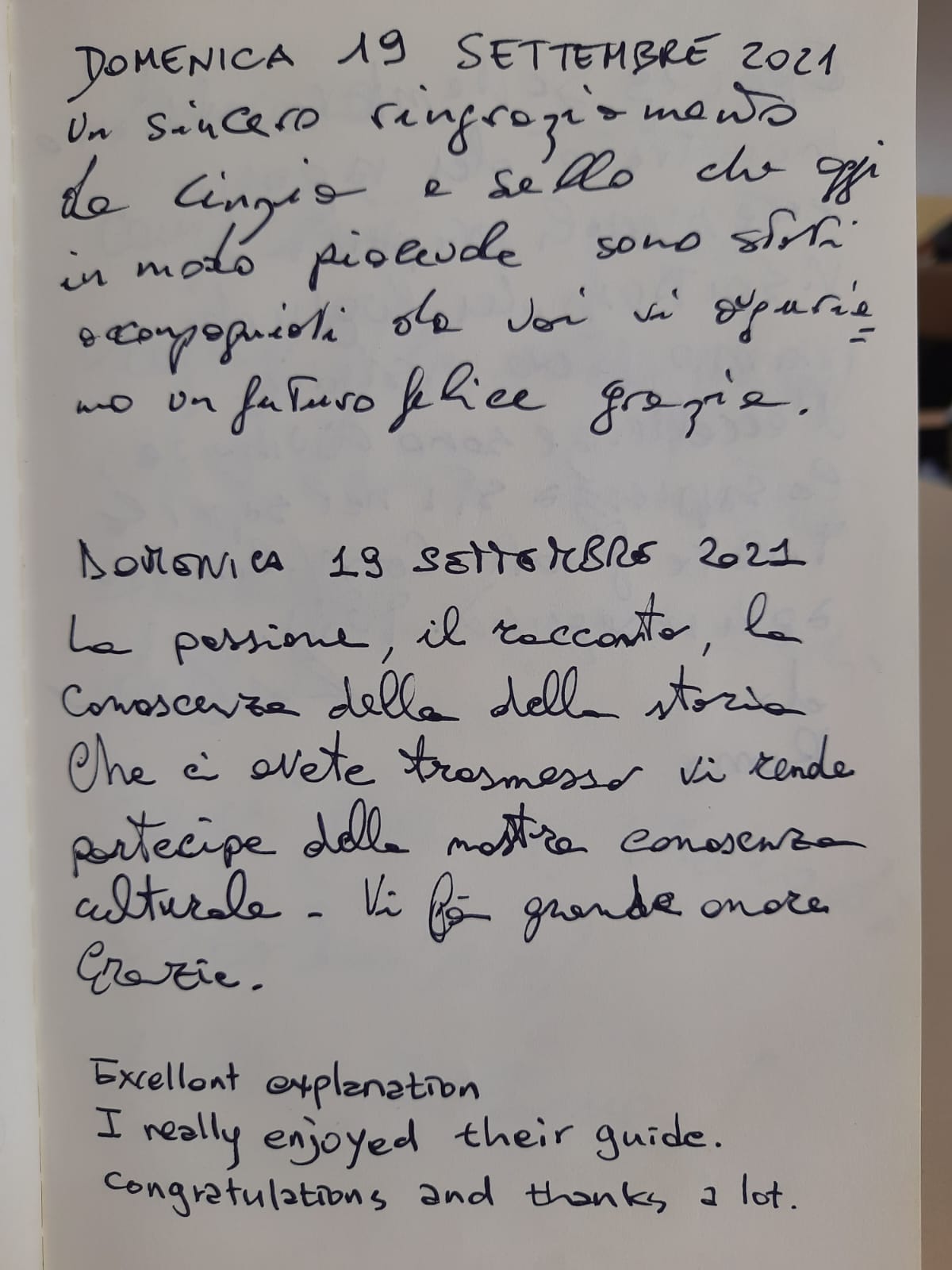 La riprova della dedizione delle giovani guide, che mostrano con minuzia e trasporto il Patrimonio del Museo dei Campi Flegrei immerso in un panorama mozzafiato, sono i riconoscimenti e le numerose dediche che vengono lasciate, ogni sabato e domenica, dai tanti visitatori soddisfatti.