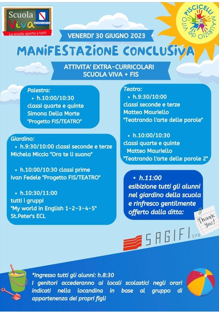 La manifestazione finale del progetto si è tenuta venerdì 30 giugno 2023. A questa, hanno potuto prendere parte anche i genitori degli alunni protagonisti.