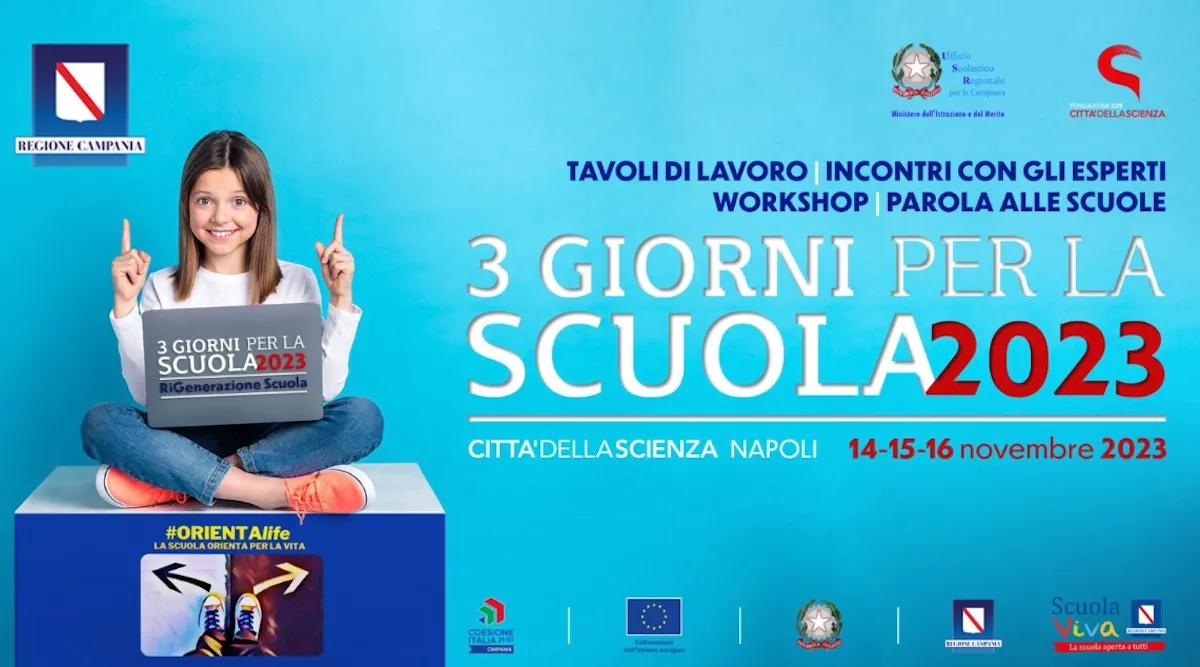 3 Giorni per la Scuola è la convention nazionale del mondo della scuola, promossa da Fondazione Idis – Città della Scienza e Assessorato alla Scuola, alle Politiche sociali e Politiche Giovanili. La XXII edizione, quella di quest’anno, si terrà dal 14 al 16 novembre prossimi a Città della Scienza.
