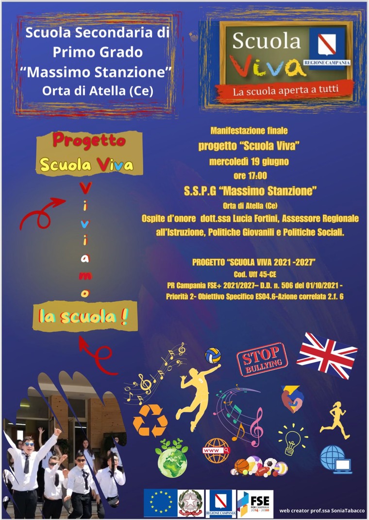 Alla SSPG Indirizzo musicale Massimo Stanzione di Orta di Atella, si è tenuta la manifestazione finale del Progetto Scuola Viva dal titolo “Viviamo la scuola”. All’evento, anche l’Assessore alla Scuola, alle Politiche Sociali e Giovanili della Regione Campania, Lucia Fortini.