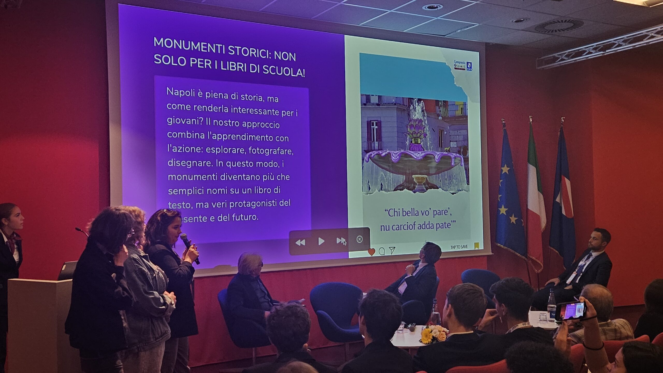 Sì perché nella prima giornata, le 36 scuole vincitrici, divise in quattro macro-gruppi, hanno lavorato insieme, supportati da Tutor (amministratori Locali, esponenti dei Forum dei Giovani Regionali e comunali) su temi come Uguaglianza, Ambiente, Politica ed Educazione CivicaStoria e Cultura, al fine di presentare, l’indomani, dinanzi a sindaci e rappresentanti locali, oltre che all’Assessore alla Scuola, alle Politiche Sociali e Giovanili della Regione Campania Lucia Fortini, al Consigliere Regionale Carmine Mocerino, ed al Governatore della Regione Campania Vincenzo De Luca, il contenuto delle proprie istanze. Realizzando un autentico ciclo virtuoso in cui i ragazzi, dai banchi delle rispettive scuole, passando per un confronto generazionale fra pari sono arrivati a proporre idee, visioni, prospettive e progetti concreti ai propri rappresentanti, a tutti i livelli.