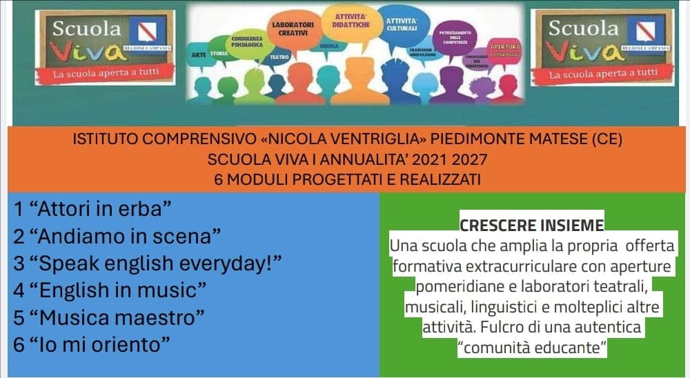 All’IC Ventriglia di Piedimonte Matese si è tenuta la manifestazione finale del progetto Scuola Viva dal titolo “CRESCERE INSIEME”.
