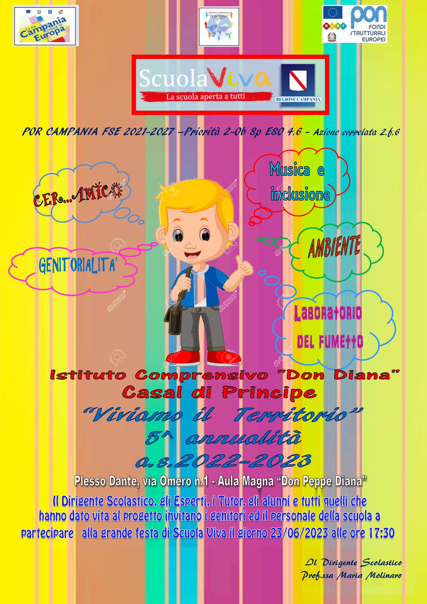 In questo caso, parliamo dell’IC Don Diana di Casal Di Principe che ha svolto la manifestazione finale del progetto “VIVIAMO IL TERRITORIO” il 24 giugno 2023, in seguito alla conclusione delle attività previste dai moduli del progetto.