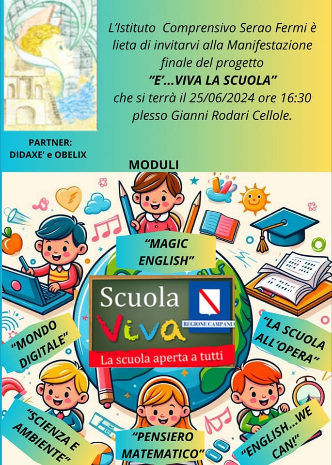 In questo caso, parliamo dell’IC Serao Fermi di Cellole che ha svolto la manifestazione finale del Progetto “È…VIVA LA SCUOLA” lo scorso 25 giugno relativamente alla conclusione delle attività previste dai moduli.