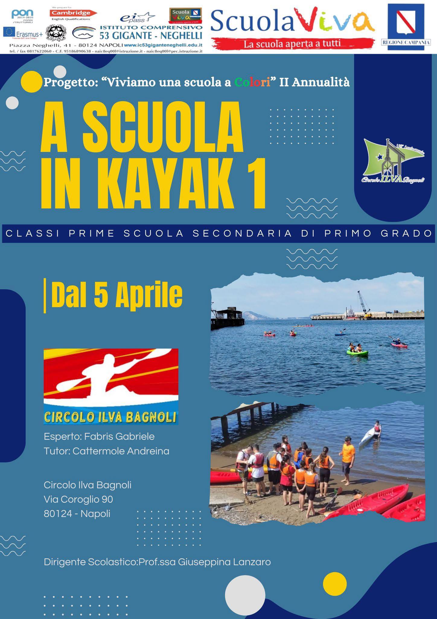 Le classi prime della scuola secondaria di I grado saranno protagoniste di un’attività innovativa presso il Circolo ILVA Bagnoli in via Coroglio 90. Il modulo A SCUOLA DI KAYAK 1, infatti, offrirà un’esperienza sportiva a stretto contatto con la natura, promuovendo il lavoro di squadra e la disciplina sportiva. Le attività inizieranno sabato 5 aprile.